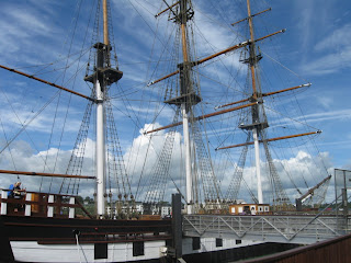 Today we drove to New Ross and had a tour of the replica ‘famine ship’ The Dunbrody. It’s an exact replica of a ship that sailed from here to New York and Quebec on a regular basis. It was originally just a freight ship but when the famine came and people were desperate; they crudely converted it with rows of bunks. Then for the return journey they just ripped the bunks out and it was a cargo ship again. There were about 160 people on board but sometimes up to 320; the ship was only about 160 feet long and the steerage area was only about 2/3 of that. Each family had one bunk – about the size of a double bed with up to six people living in it for 4-6 weeks. They were only allowed on deck for ½ an hour a day, to cook their food and empty their buckets (toilets).
